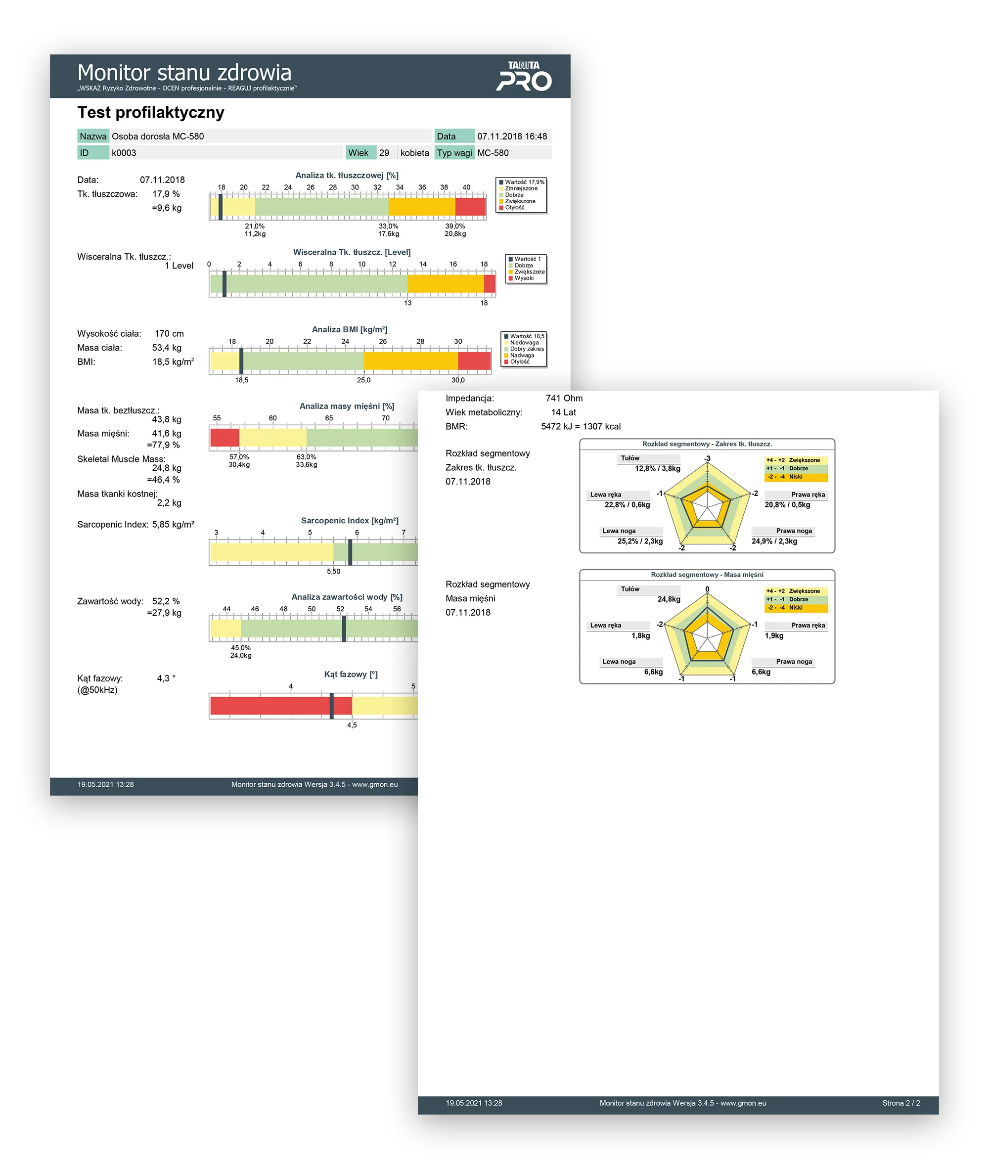 Analizator TANITA MC-580 służy do pomiaru i monitorowania komponentów budowy ciała:
